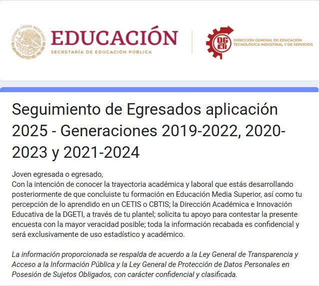 Pedimos de tu valiosa colaboración para contestar la encuesta de seguimiento de egresados en:
